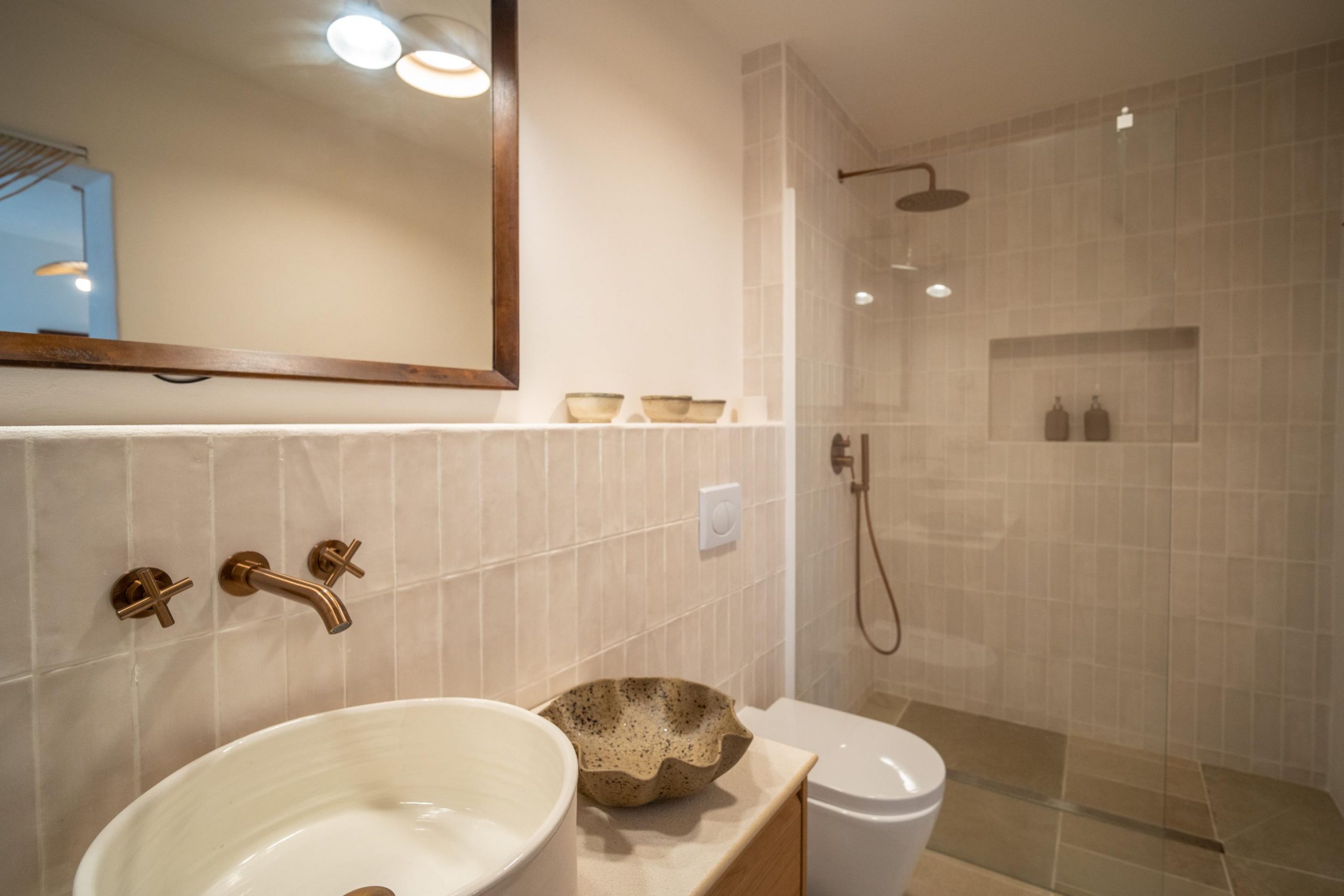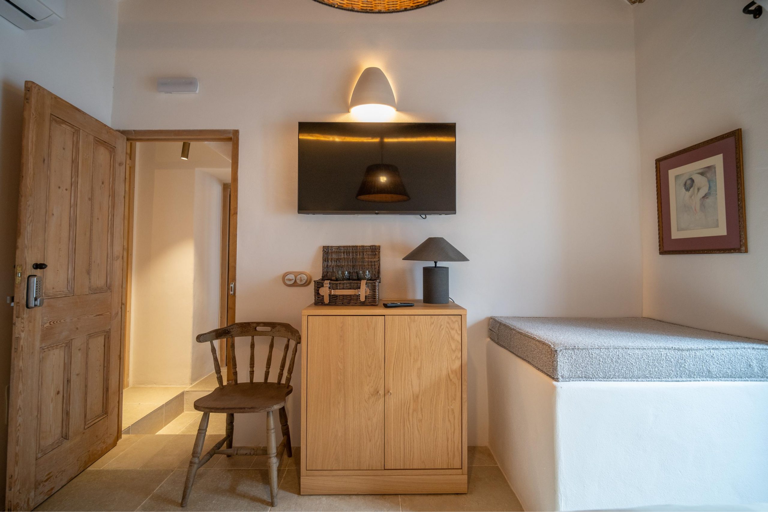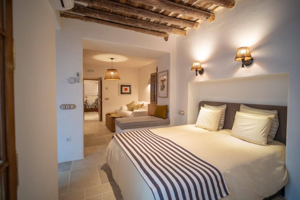 Habitación amplia con baño en suite y zona de sofa – tv.